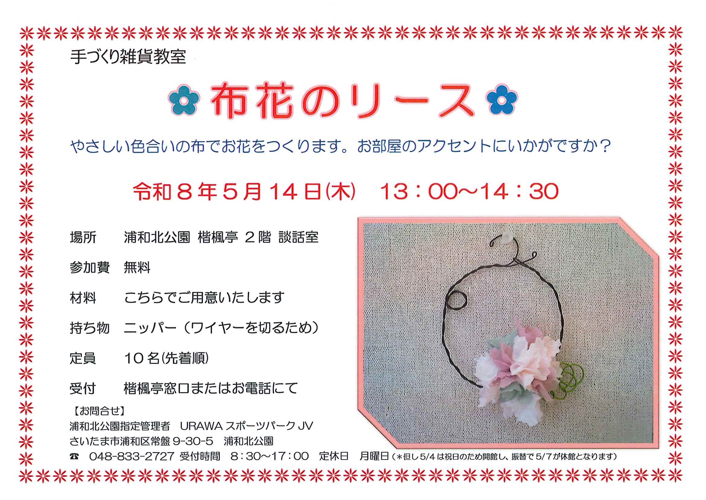5月14日(木)手作り雑貨教室 開催のお知らせ