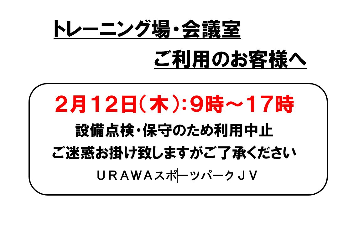 2月12日トレーニング場・会議室利用中止のお知らせ